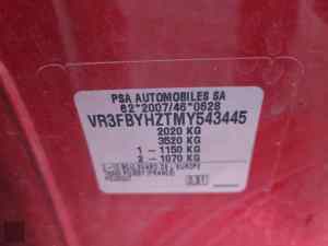 | Številka ogrodja | VR3FBYHZTMY543445 |