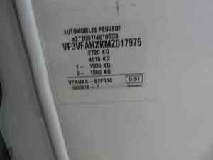 | Številka ogrodja | VF3VFAHXKMZ017976 |